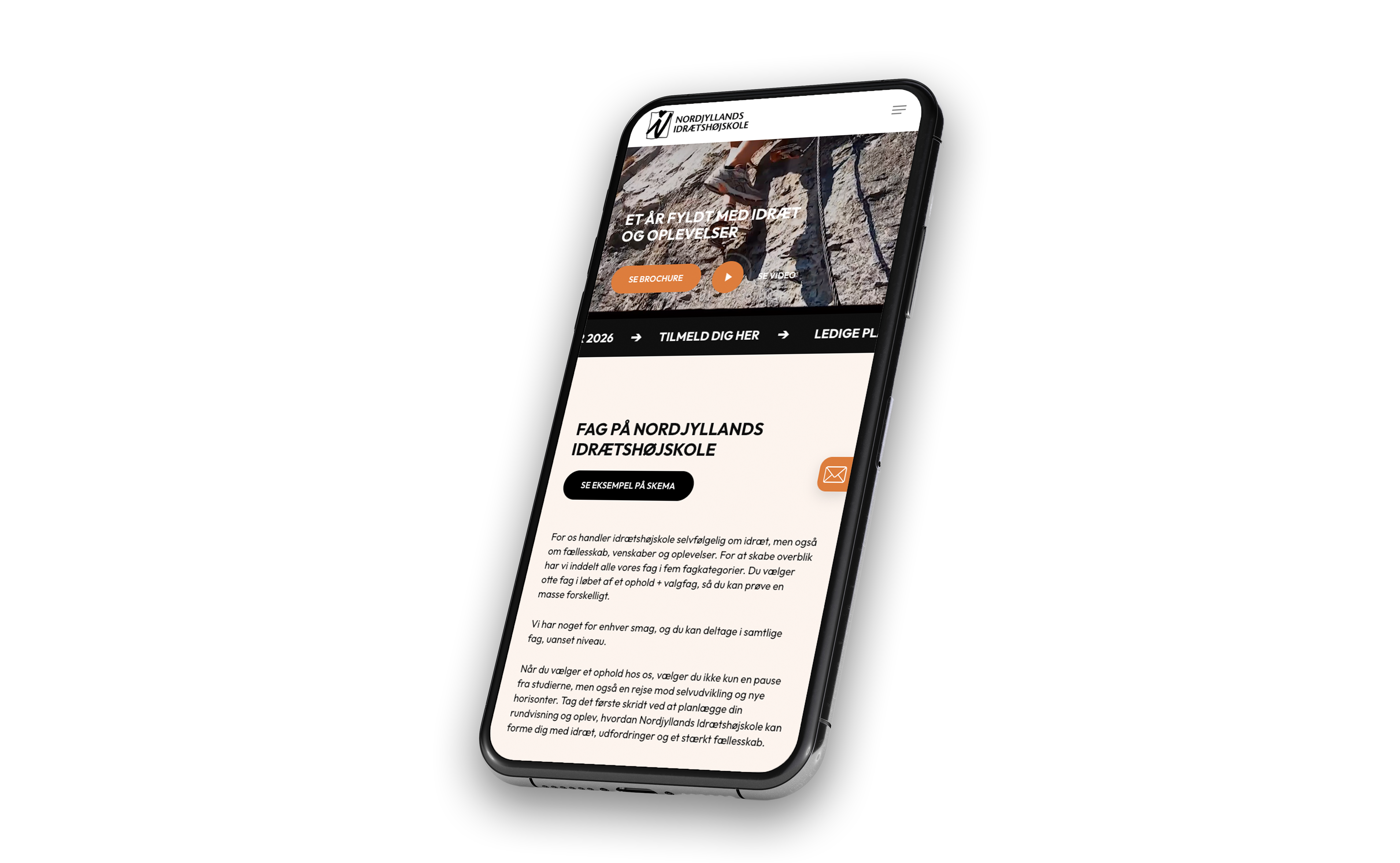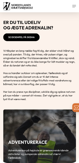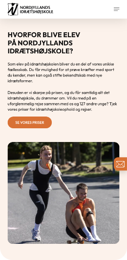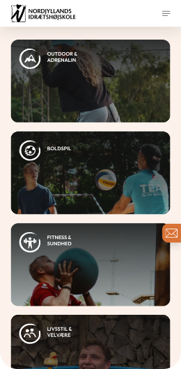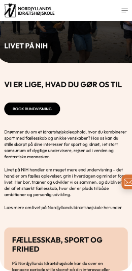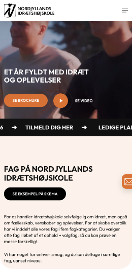 Målet var at skabe en engagerende og intuitiv hjemmeside, hvor man får en fornemmelse af alt det, Nordjyllands Idrætshøjskole rummer. Gennem et levende visuelt udtryk og en overskuelig struktur har vi arbejdet med at formidle fællesskabet, oplevelserne og idrætsglæden, som kendetegner højskolen.